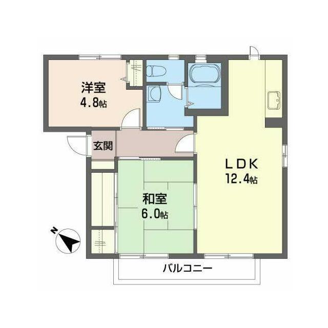 2LDK(LDK12.4帖 洋室4.8帖 和室6.0帖) |